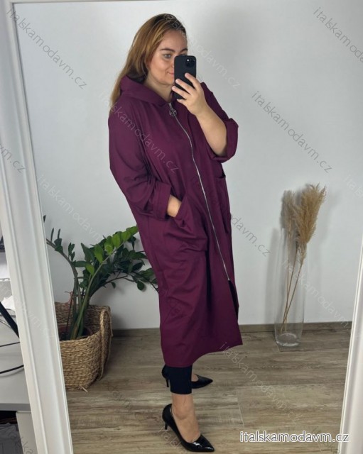 Mikina dlouhá s kapucí na zip dlouhý rukáv dámská nadrozměr (56/58 ONE SIZE) ITALSKÁ MÓDA IMSM2438843/DU 56/58 fialová