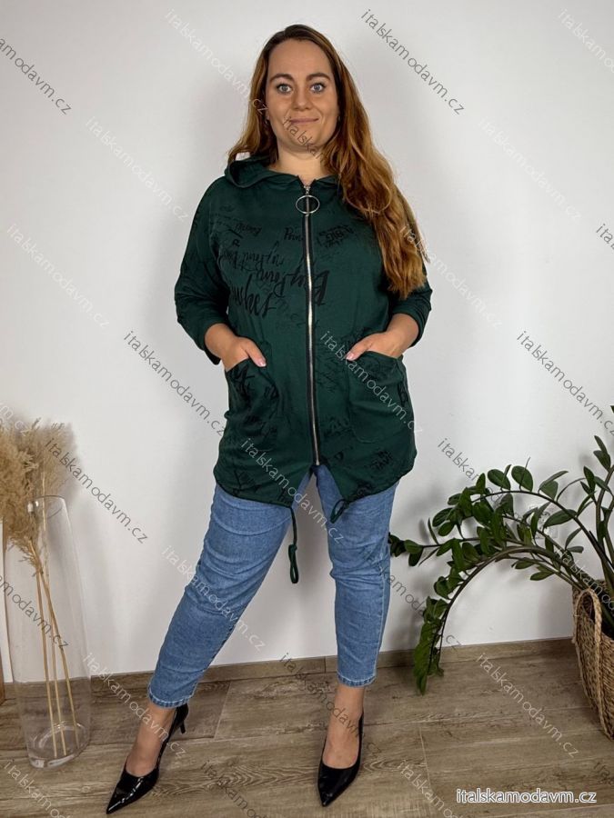 ZBOŽÍ (22075) > Mikina dlouhý rukáv na zip s kapucí dámská nadrozměr (50/52/54 ONE SIZE) ITALSKÁ MÓDA IMD22680/DU 50/52/54 tmavě smaragdová