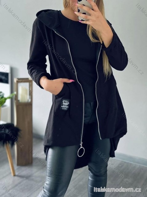 Mikina prodloužená dlouhý rukáv na zip s kapucí dámská (L/XL ONE SIZE) ITALSKÁ MÓDA IMD23DENY