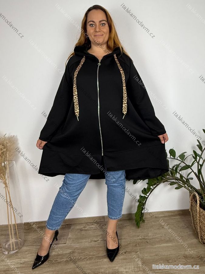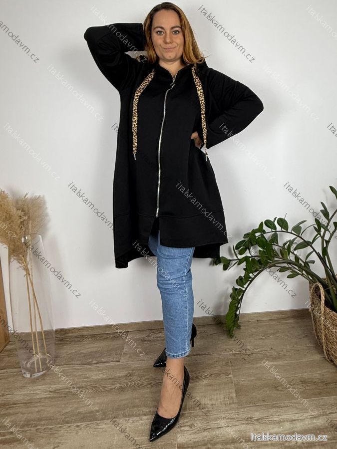 Mikina prodloužená s kapucí na zip dlouhý rukáv dámská nadrozměr ZITA (54/56/58 ONE SIZE) ITALSKÁ MÓDA IMC25394