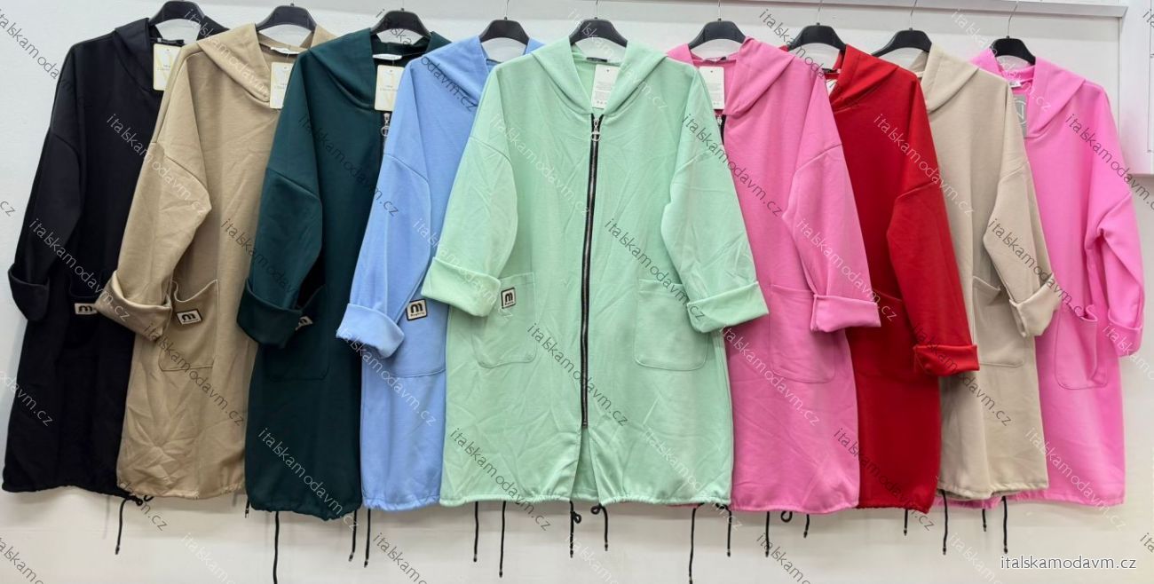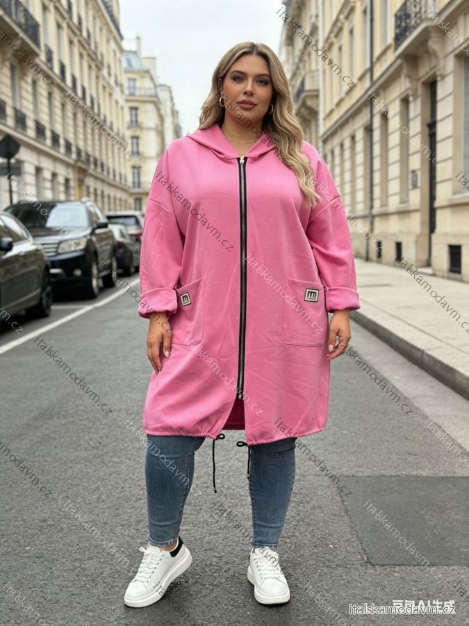 Mikina prodloužená s kapucí na zip dlouhý rukáv dámská nadrozměr (54/56/58 ONE SIZE) ITALSKÁ MÓDA IM426081