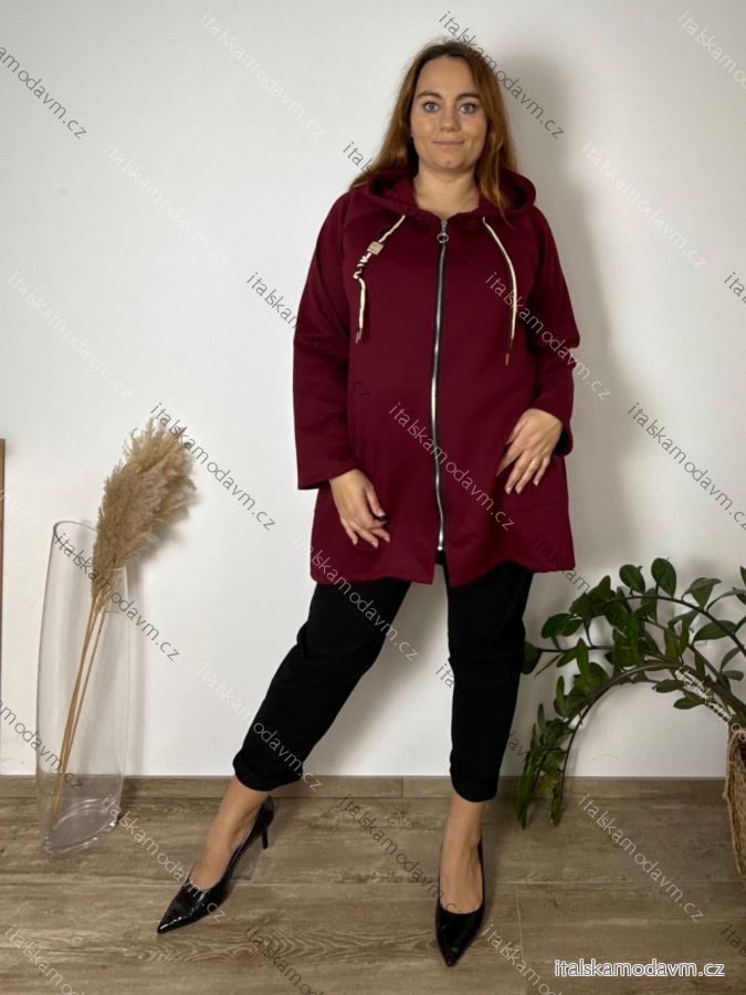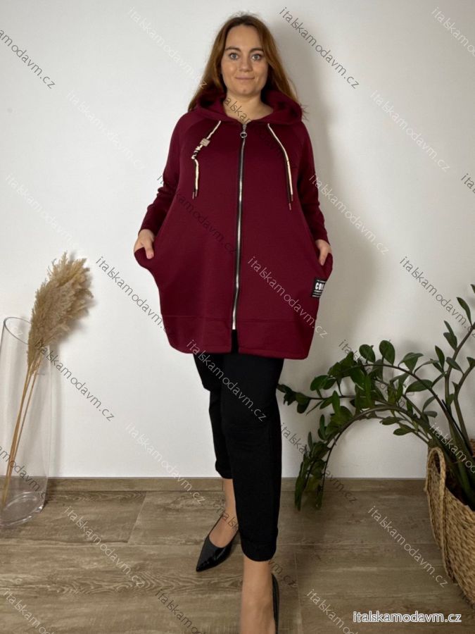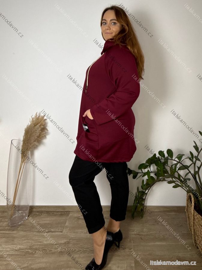 Mikina teplá s kapucňou dlhý rukáv dámska nadrozmer RENATA (54/56/58 ONE SIZE) TALIANSKA MÓDA IM425696