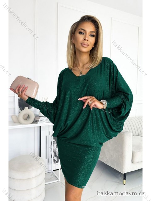 ZBOŽÍ (21842) > oblečenie dámske (17722) > šaty (9239) > Šaty na ramienkach (1607) > Netopierie šaty s výstrihom - zelené s trblietkami NMC-402-2/DU zelená S/M