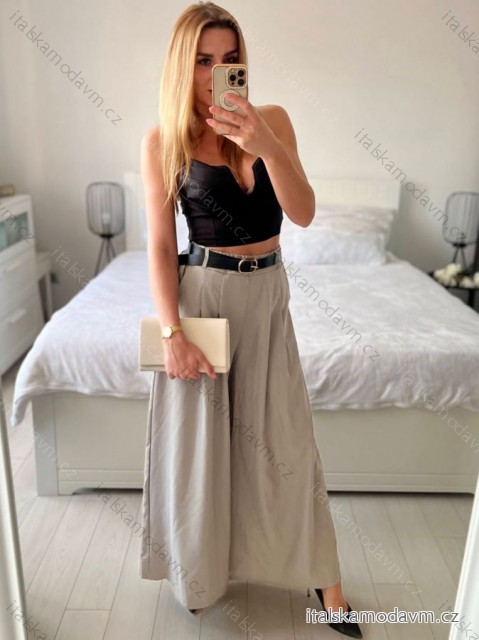 Nohavice dlhé dámske (S/M/L ONE SIZE) TALIANSKA MÓDA IMWAD24017/DU - tmavo béžová - M / L