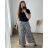 Nohavice letné dlhé dámske nadrozmer (54/56 ONE SIZE) POLSKÁ MÓDA IMWT24092/DUR - hnědá gepard -