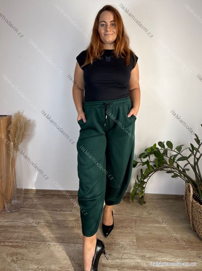ZBOŽÍ (22753) > Nohavice/tepláky voľnočasové maslové balónové dámske nadrozmer (46/48/50 ONE SIZE) TALIANSKA MÓDA IM425699/DUR 46/48/50 tmavo zelená