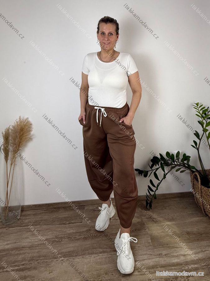 Nohavice/tepláky voľnočasové maslové balónové dámske nadrozmer (46/48/50 ONE SIZE) TALIANSKA MÓDA IM425699/DUR khaki 46/48/50