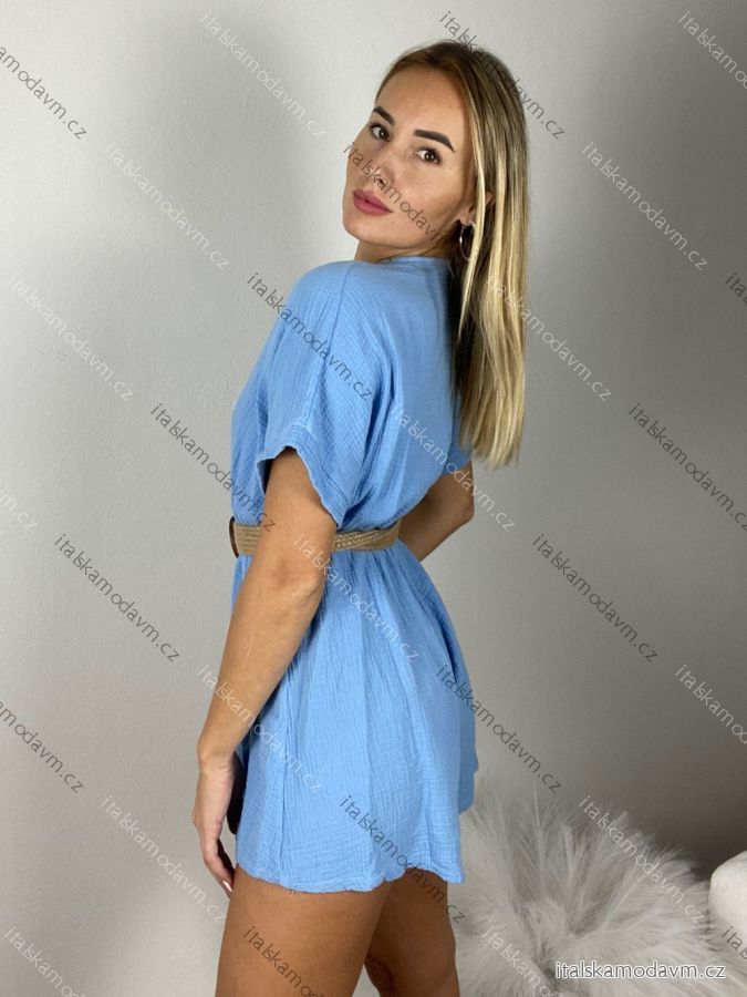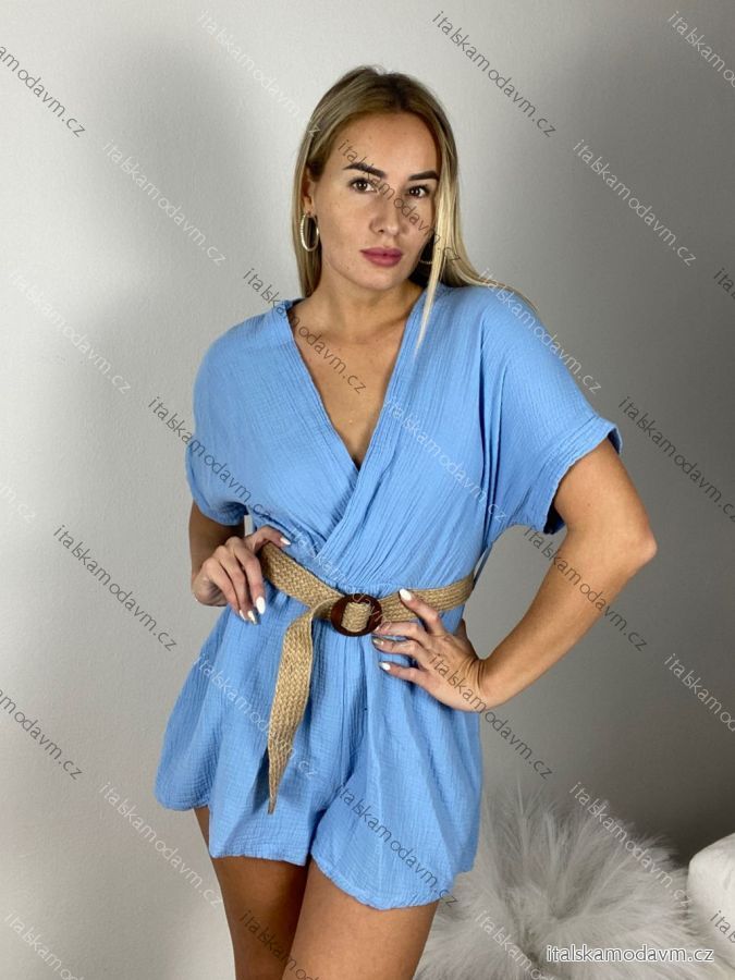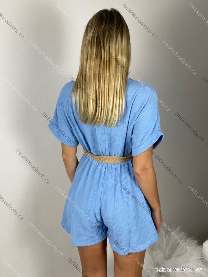 Overal krátky letný mušelínový s opaskom krátky rukáv dámsky (S/M ONE SIZE) TALIANSKA MÓDA IM3250002/DU - čierna - S / M