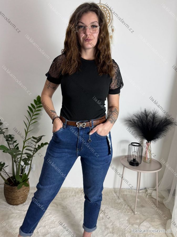 Rifle jeans s páskem MOM FIT dámske nadrozměr (M-3XL) MOON GIRL MOG25KF520-3 modrá 2XL