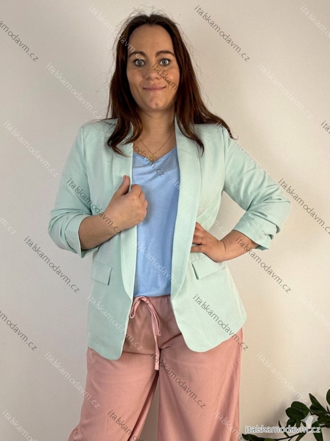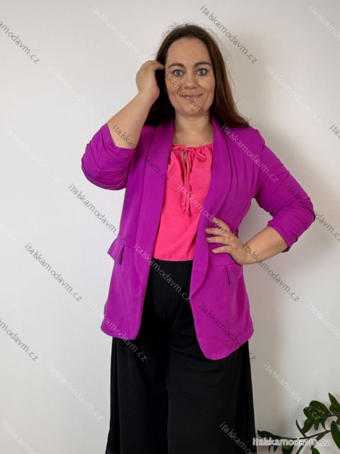 Sako elegantní dlouhý rukáv dámské nadrozměr CHRISTIE (42/44/46 ONE SIZE) ITALSKÁ MÓDA IM426039/DUR 42/44/46 Černá