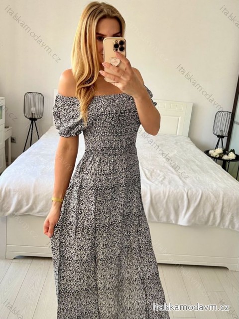 (5352) > Šaty voľnočasové krátky rukáv (2459) > Šaty volnočasové krátký rukáv (2459) > Šaty carmen žabičkované letné krátky rukáv dámske (M/L, XL/2XL ONE SIZE) IMB24B212/DUR - čierna