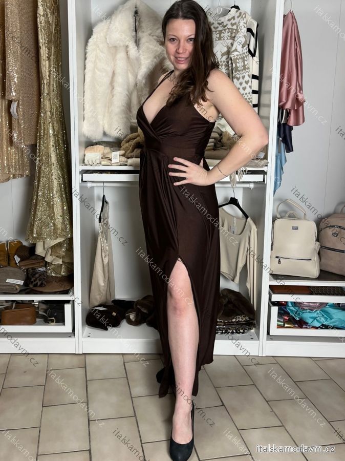 ZBOŽÍ (21961) > Šaty dlhé elegantné na ramienka dámske AMANDA (S/M/L ONE SIZE) TALIANSKA MODA IM323022/DUR hnědá, S/M/L