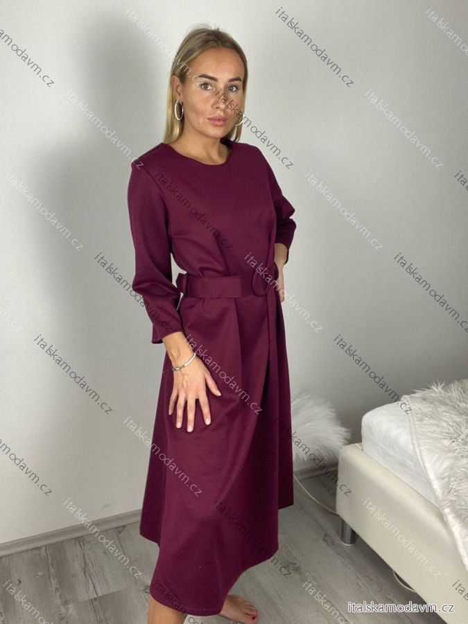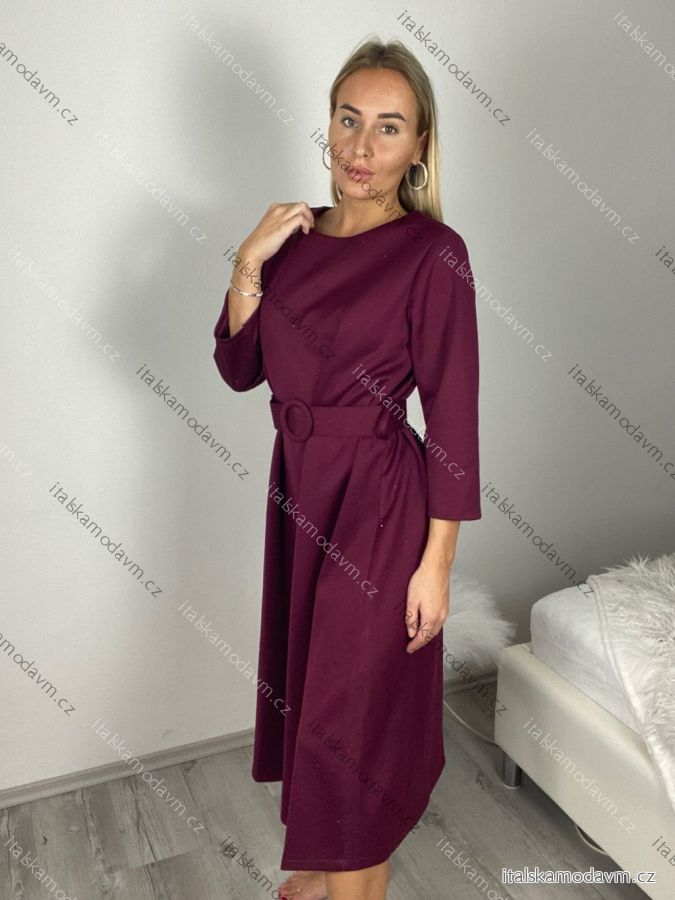 Šaty elegantné s opaskom dlhý rukáv dámske JANE (S/M/L ONE SIZE) TALIANSKA MÓDA IMM25M8066