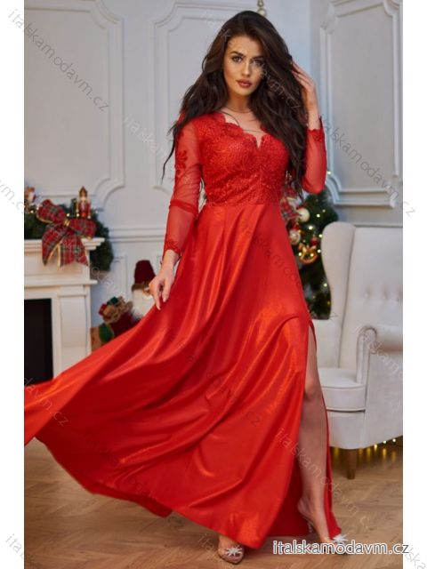 Šaty dlhé elegantné spoločenské 3/4 rukáv dámske nadrozmer (36-54) POLSKÁ MÓDA PMLBF23ID1930 červená 46