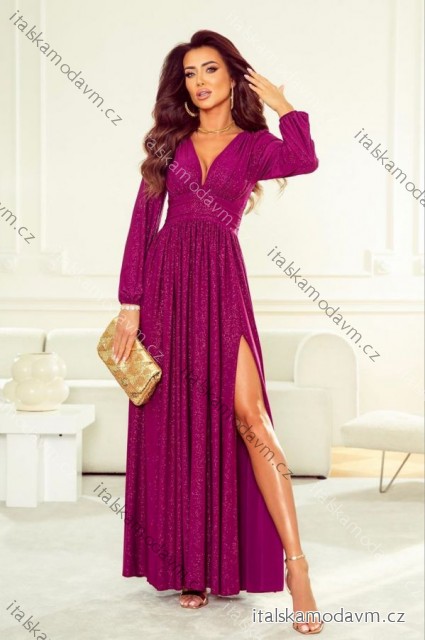 Šaty dlhé elegantné trblietavé dlhý rukáv dámske nadrozmer (34-50) POLSKÁ MÓDA PMLWD24RAMONA tmavo ružová 42