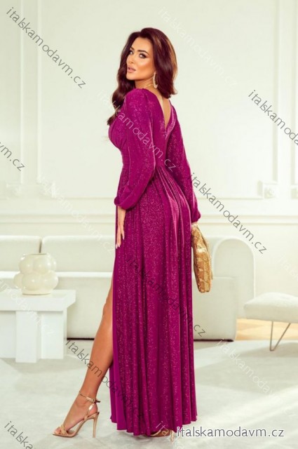 Šaty dlhé elegantné trblietavé dlhý rukáv dámske nadrozmer (34-50) POLSKÁ MÓDA PMLWD24RAMONA tmavo ružová 36