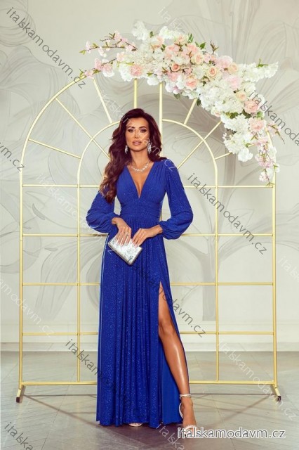Šaty dlhé elegantné trblietavé dlhý rukáv dámske nadrozmer (34-50) POLSKÁ MÓDA PMLWD24RAMONA1 modrá kráľovská 50