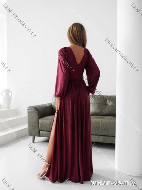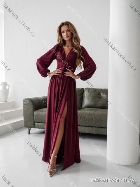 Šaty dlhé elegantné trblietavé dlhý rukáv dámske nadrozmer (34-50) POLSKÁ MÓDA PMLWD24RAMONA5 vínová 44