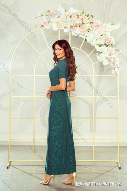 Šaty dlouhé elegantní třpytivé krátký rukáv dámské nadrozměr (34-48) POLSKÁ MÓDA PMLWD24CELIA4 tmavo zelená 36