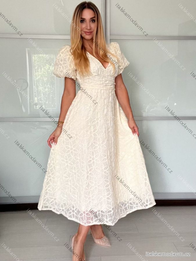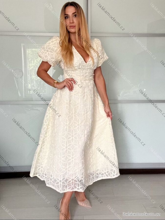 Šaty dlhé elegantný letný krátky rukáv dámske SIREINA (S/M/L ONE SIZE) TALIANSKA MÓDA IMPOC256565/DUR S/M/L béžová