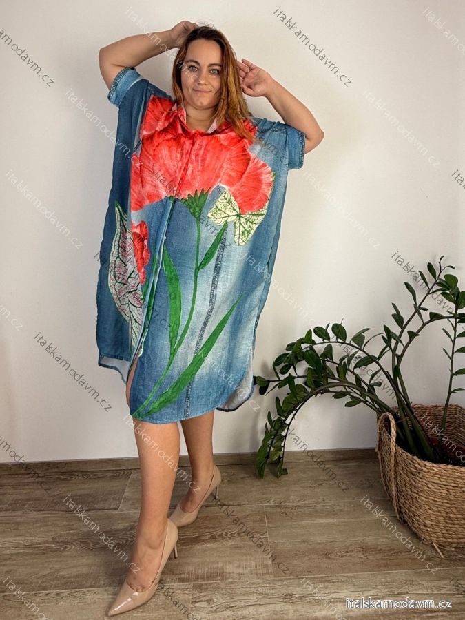 Šaty dlhé košeľové 3/4 dlhý rukáv dámske nadrozmer (56/58 ONE SIZE) TALIANSKA MÓDA IMWGS24535-B/DR - modrá - 56/58
