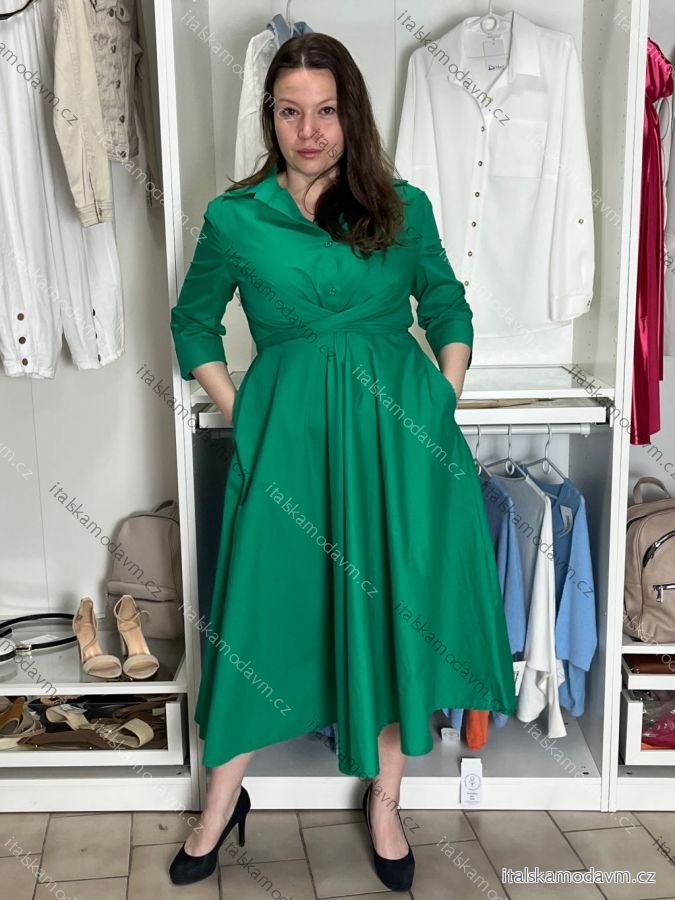 Šaty dlhé košilové 3/4 dlhý rukáv dámske (S/M/L ONE SIZE) TALIANSKA MÓDA IM5260001/DUR S/M/L zelená
