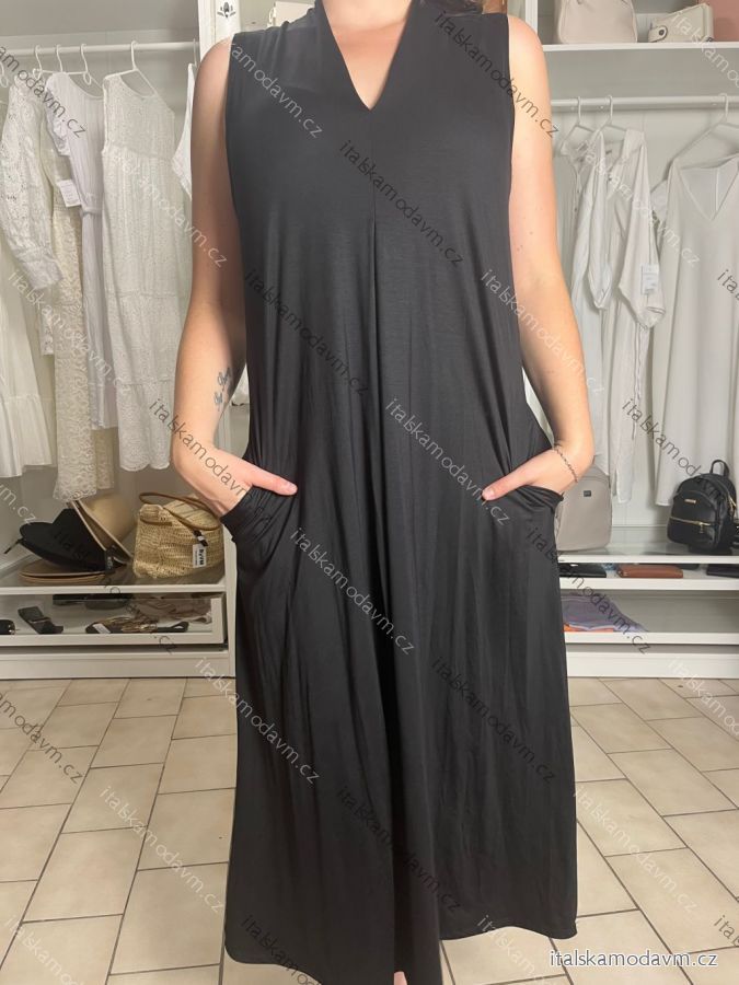 Šaty dlhé letné bez rukávov dámske (S/M/L ONE SIZE) TALIANSKA MÓDA IMM25M12669/DU S/M/L čierna