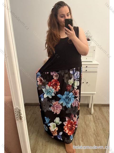 Šaty dlhé letné bez rukávu kvetované dámske nadrozmer (XL/2XL/3XL/4XL ONE SIZE) TALIANSKA MÓDA IMD22437