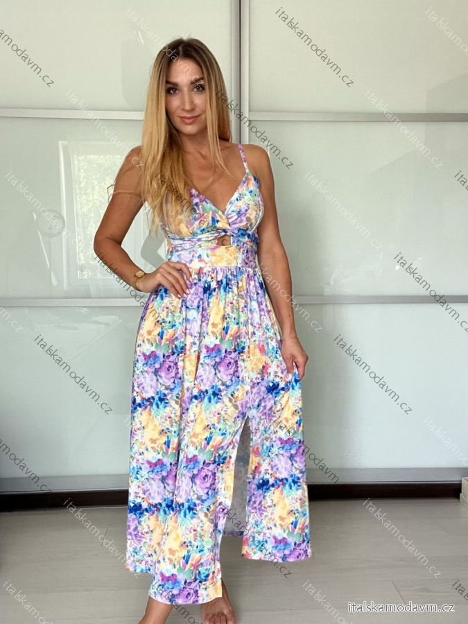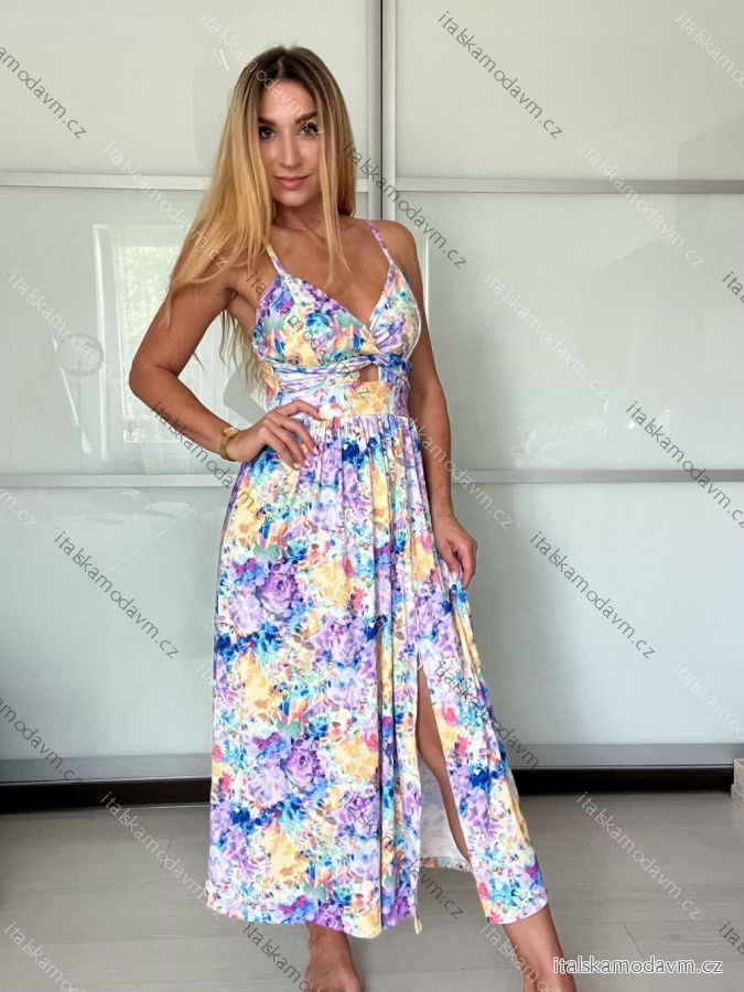 ZBOŽÍ (21709) > Šaty dlhé letné citrónky lemon, kvetované na ramienka dámske DIXIE (XS/S/M ONE SIZE) TALIANSKA MÓDA IMWHD252134-3/DUR XS/S/M fialová