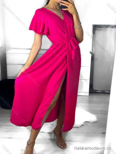 Šaty dlhé letné krátky rukáv dámske (S/M ONE SIZE) TALIANSKA MÓDA IMWGM232000/DU S/M tmavo ružová