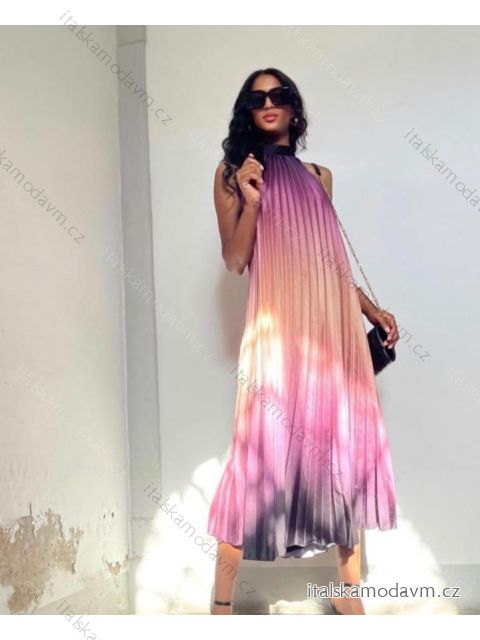 Šaty dlhé letné ombré skládané bez rukávu dámske (S/M/L/XL ONE SIZE) TALIANSKA MÓDA IMPLM222294/DR
