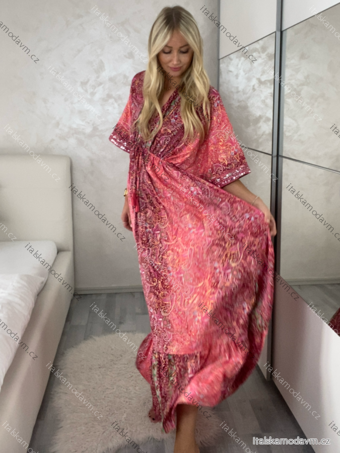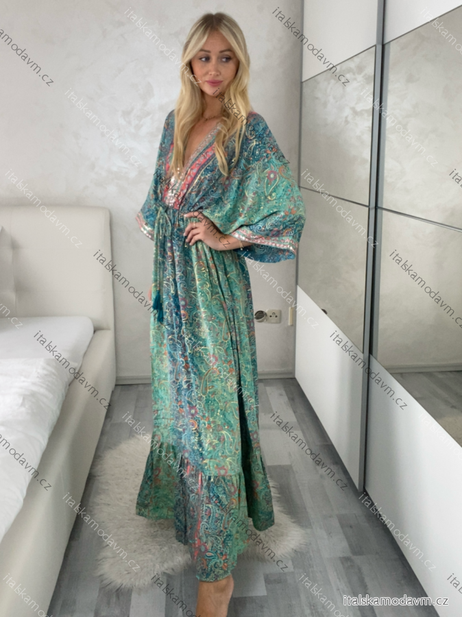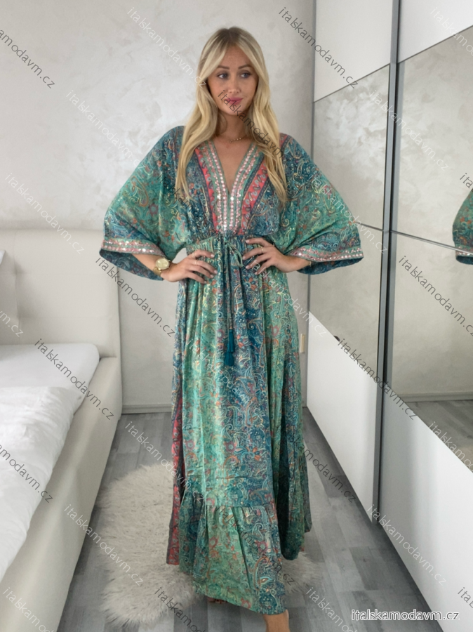 Šaty dlhé letný dlhý rukáv dámske LAJLA (S/M/L ONE SIZE) INDICKÁ MÓDA IMWKA25HE309G