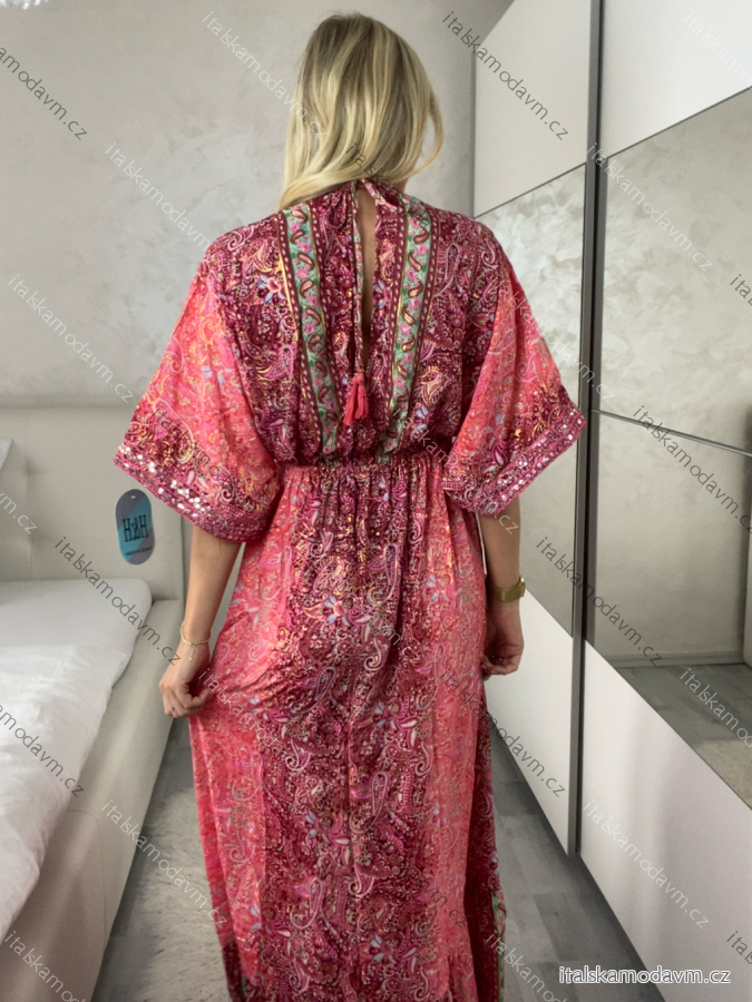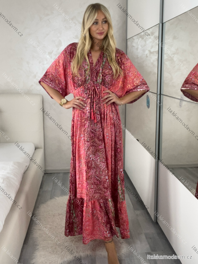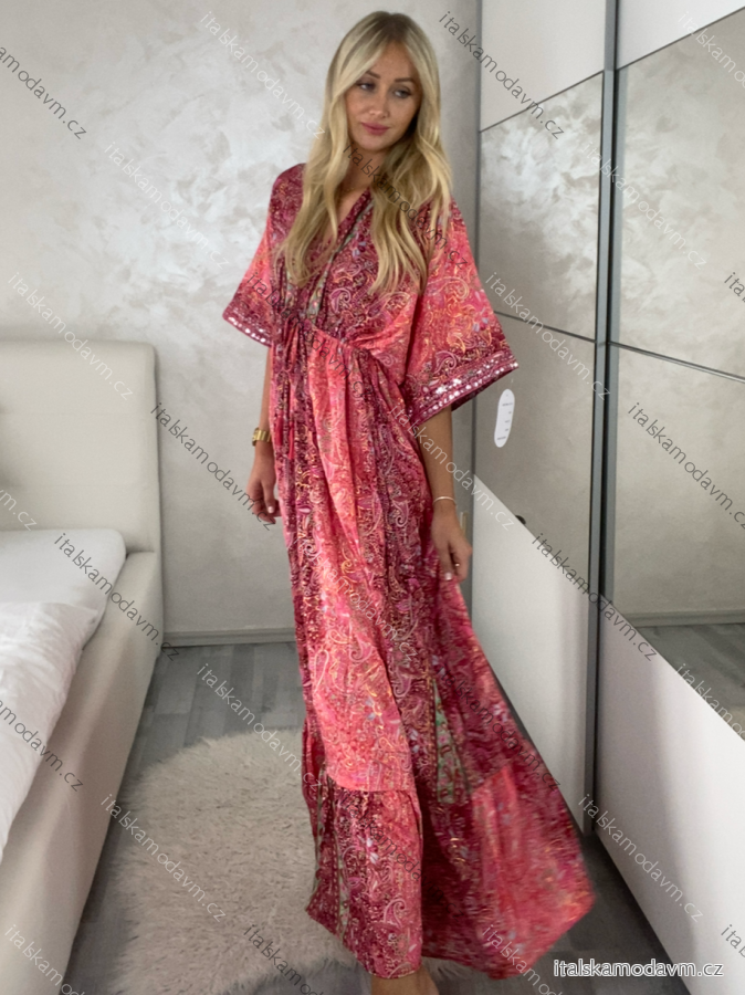 Šaty dlhé letný dlhý rukáv dámske LAJLA (S/M/L ONE SIZE) INDICKÁ MÓDA IMWKA25HE309G-1/DUR S/M/L ružová