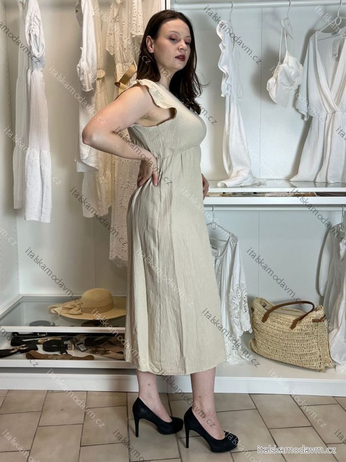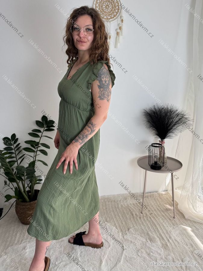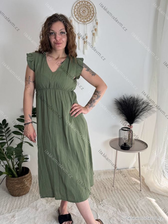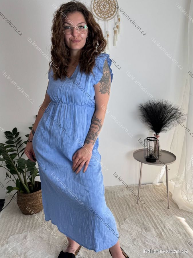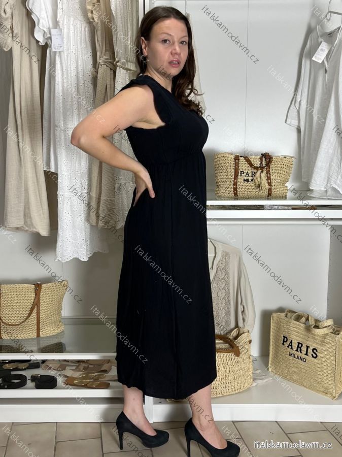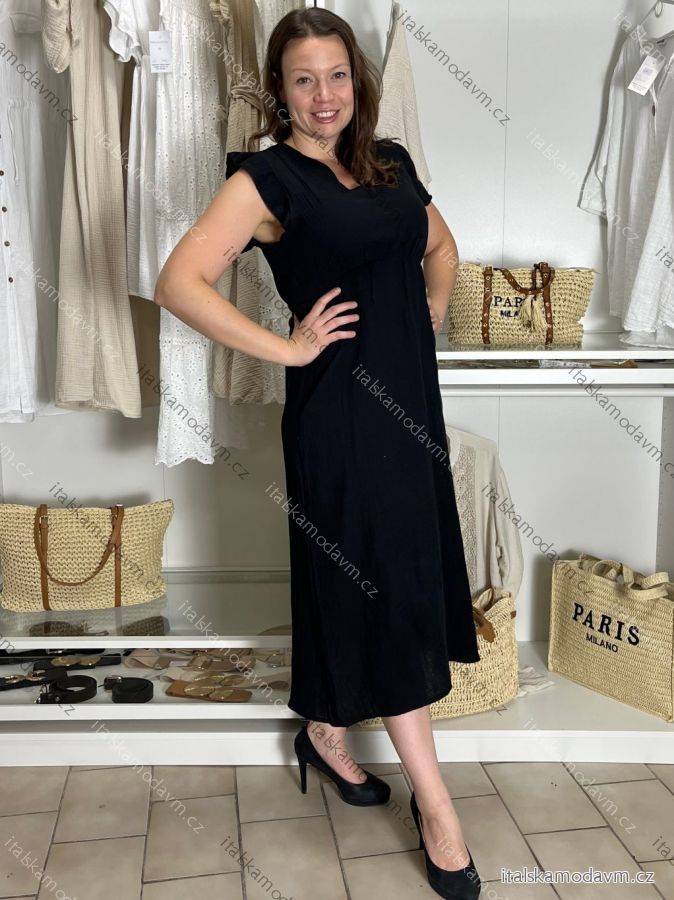 Šaty dlhé letný mušelín krátky rukáv dámske JULI (S/M/L ONE SIZE) TALIANSKA MÓDA IMWB25894/DUR černá S/M/L