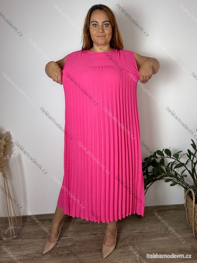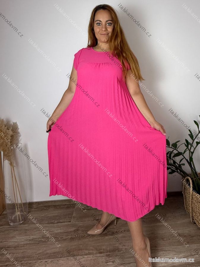 Šaty dlhé oversize elegantní plisované krátky rukáv dámske nadrozmer EMILIA (42/44/46 ONE SIZE) TALIANSKA MÓDA IM425EMILIA/DUR středně růžová 42/44/46