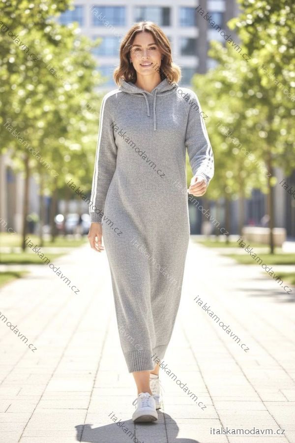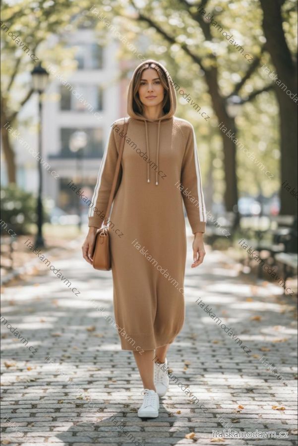 Šaty dlhé pletené s kapucňou dlhý rukáv dámske (S/M/L ONE SIZE) TALIANSKA MÓDA IMD25200
