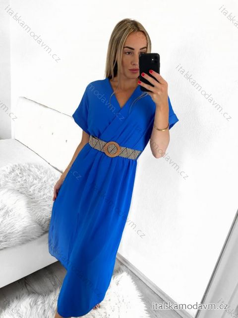 Šaty dlhé s opaskom krátky rukáv dámske (S/M ONE SIZE) TALIANSKA MÓDA IMWA231372/DUR S/M zelená