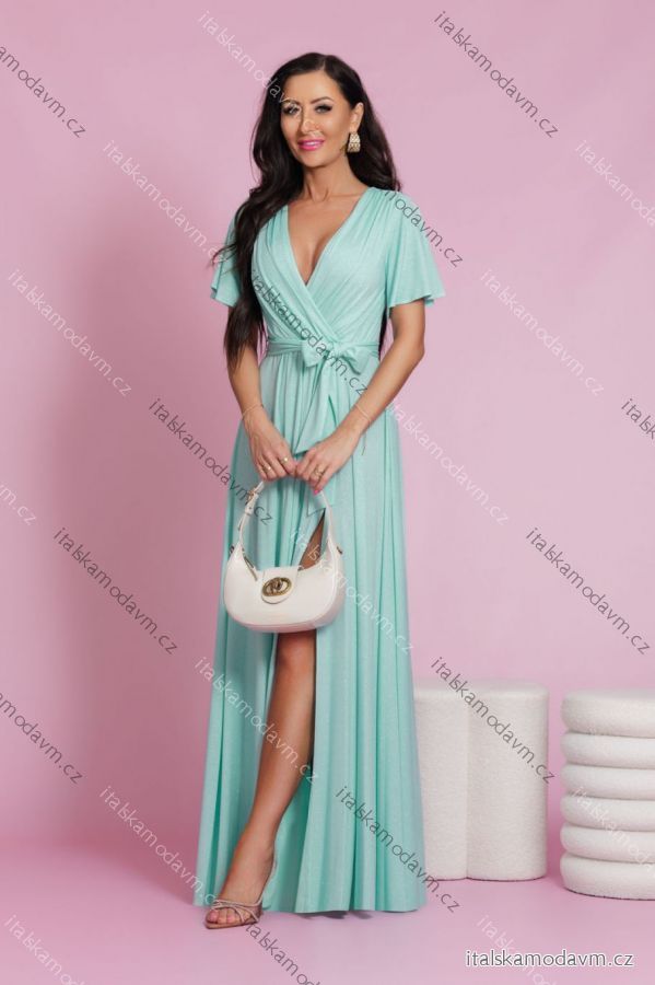 Šaty dlhé spoločenské brokátové trblietavé krátky rukáv dámske (S - 2XL) POLSKÁ MÓDA PMLEL24BELLA12/DU zelená mintova 5XL
