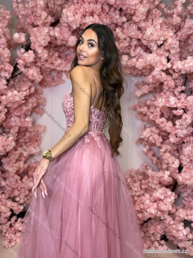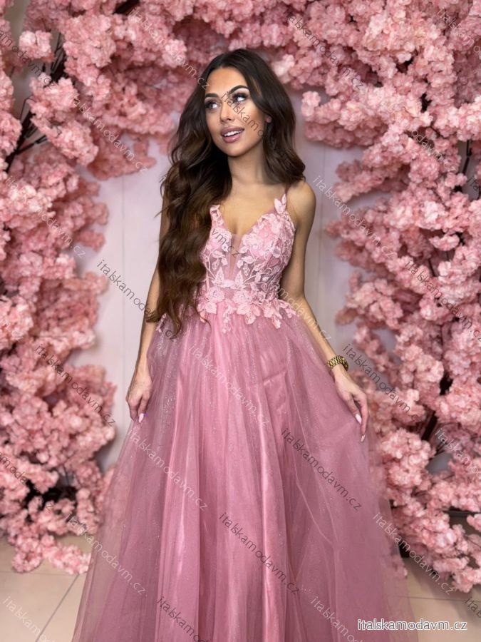 Šaty dlhé spoločenské krajkové na ramienka dámske TIRAMISU (34-40) POLSKÁ MÓDA PMLPT26003-4