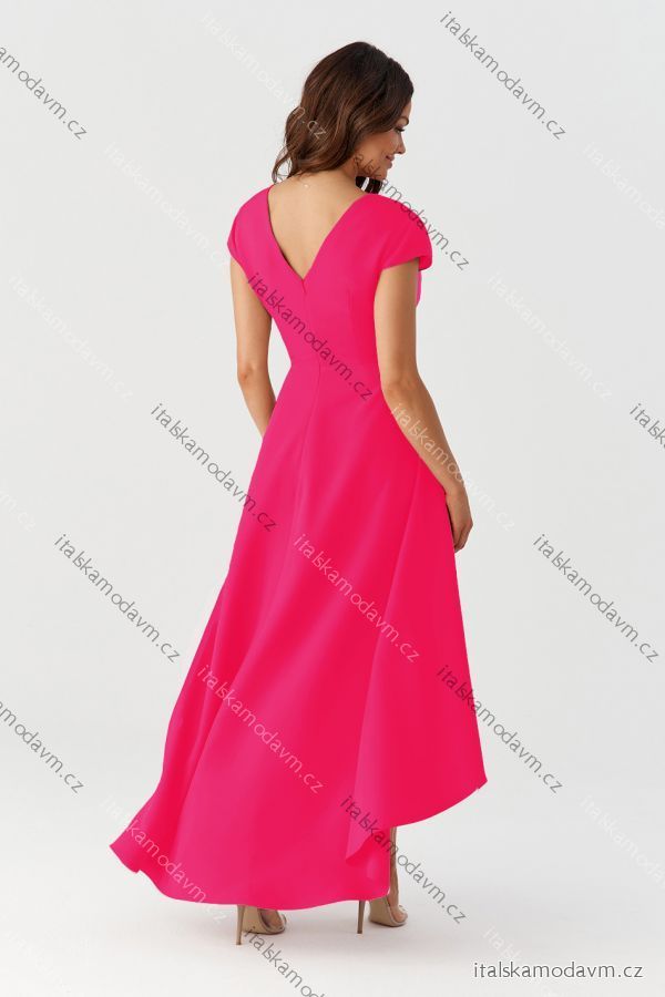 Šaty dlhé spoločenské krátky rukáv dámske (36-56) POLSKÁ MÓDA PMLMR23SELENA-1/DUR růžová fuchsiová 48