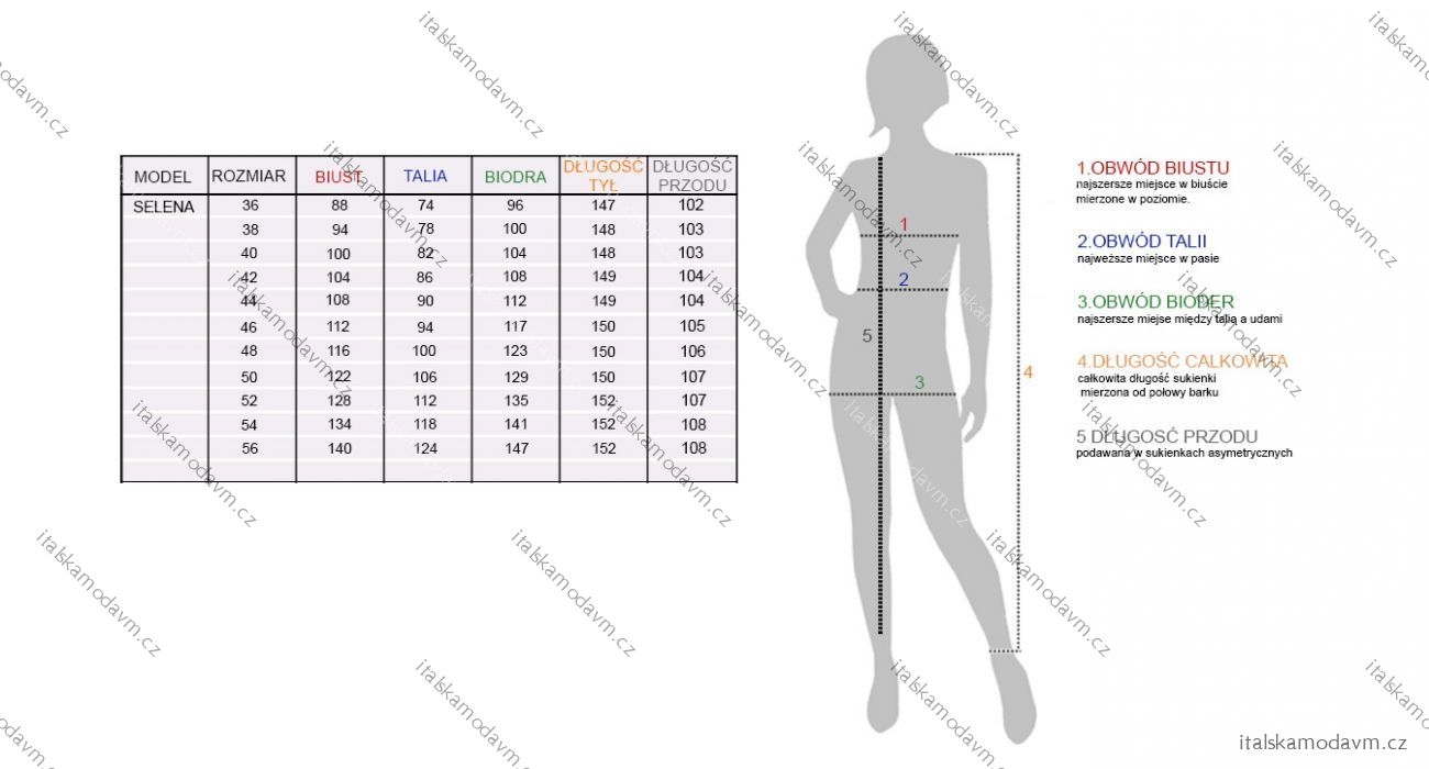veľkosť 36 - cez prsia 88-96cm, v páse 72-78cm, cez boky až 180cm, dĺžka 101-141cm.