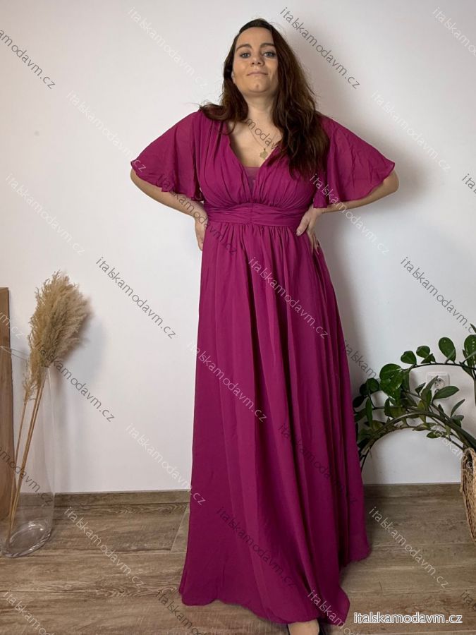 Šaty dlhé spoločenské krátky rukáv dámske nadrozmer BELLA (44/46/48 ONE SIZE) TALIANSKA MÓDA IMC25524