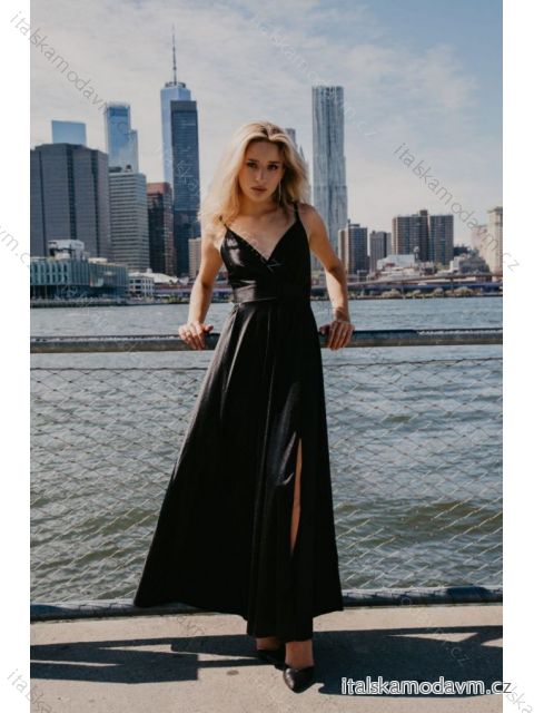 Šaty dlouhé společenské na ramínka dámské (36-48) POLSKÁ MÓDA PMLMR23MIA-1 čierna 36