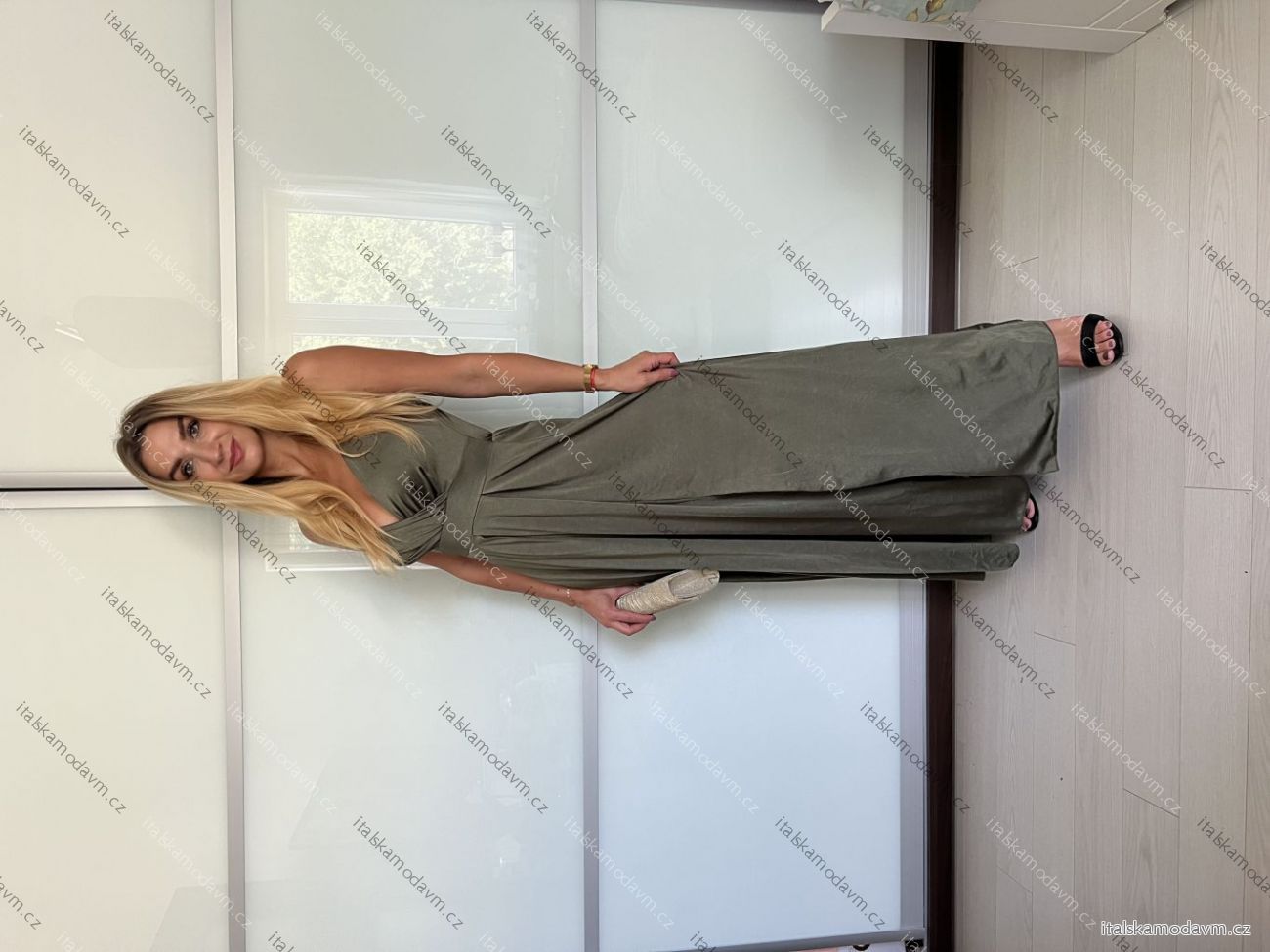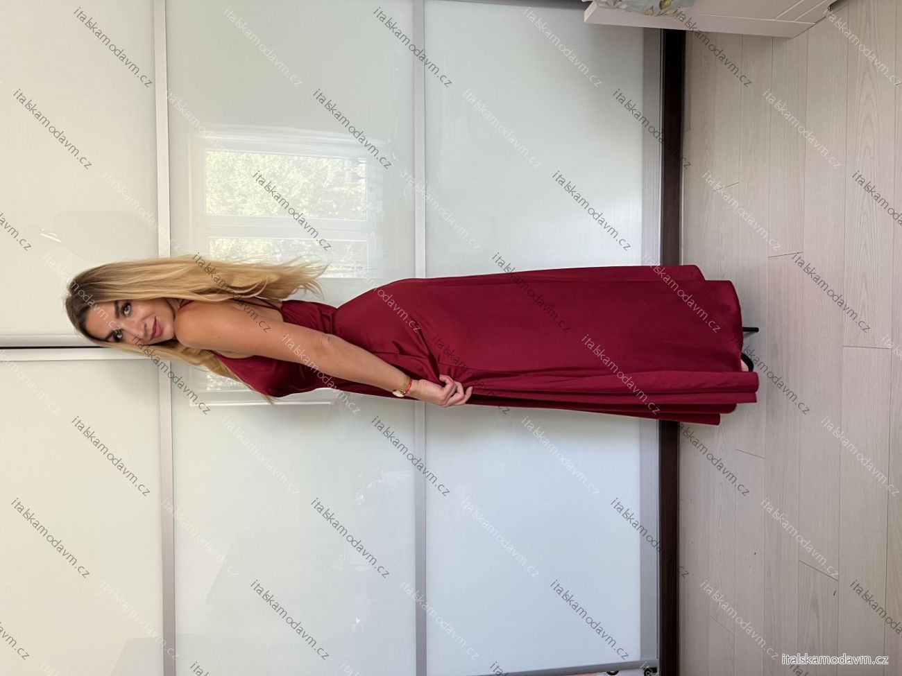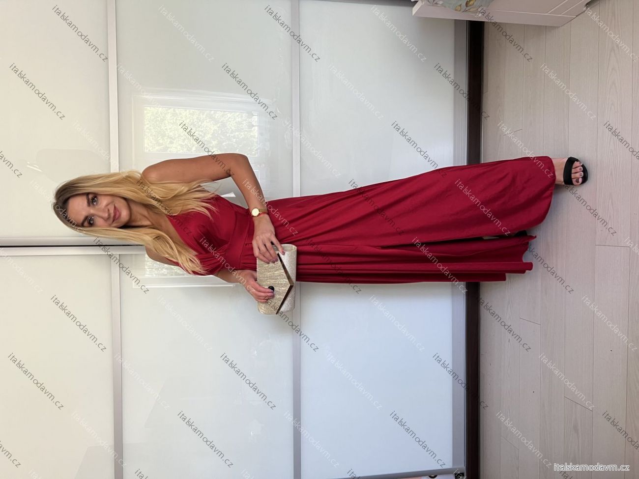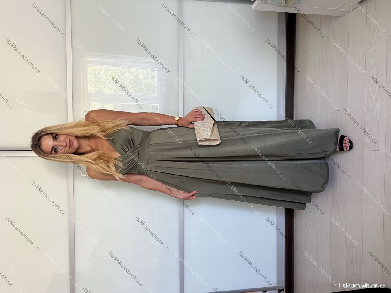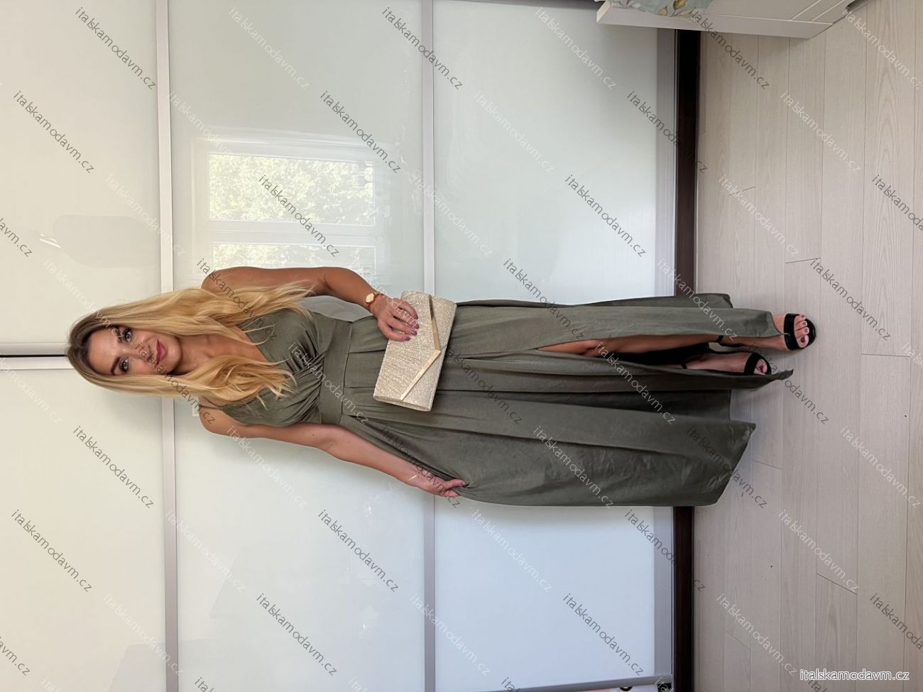 Šaty dlhé spoločenské na ramienka dámske BEATRIX (S/M/L ONE SIZE) TALIANSKA MÓDA IMM25M35843/DUR smaragdová S/M/L