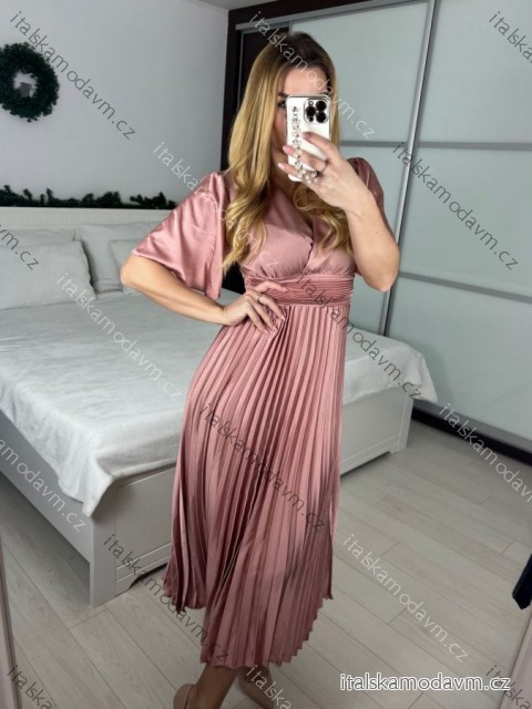 Šaty dlhé spoločenské saténové skladané krátky rukáv dámske (S/M/L ONE SIZE) TALIANSKA MÓDA IM424869/DU - čierna - S/M/L