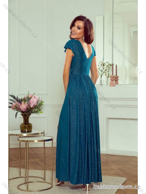 Šaty dlhé spoločenské trblietavé s flitrami krátky rukáv dámske nadrozmer (34-48) POLSKÁ MÓDA PMLWD23GABRIELA11/DU - modrá petrolejová - 42