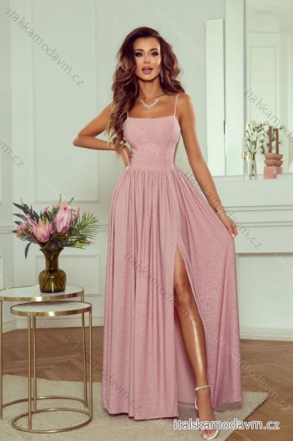 Šaty dlhé spoločenské trblietavé s flitrami na ramienka dámske (34-38) POLSKÁ MÓDA PMLWD23AMELIA14 ružová 38