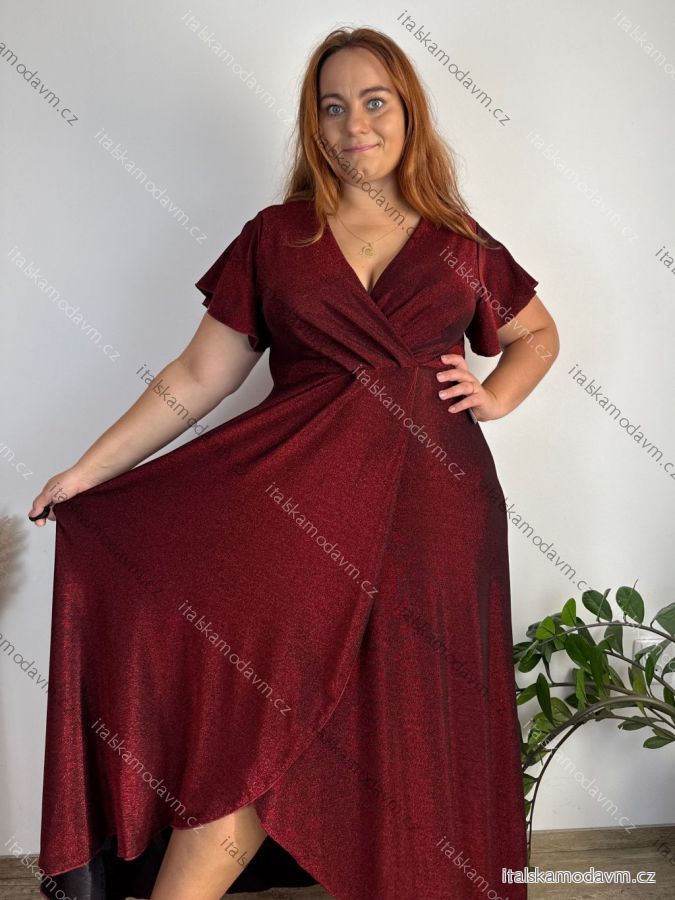 ZBOŽÍ (22833) > Šaty dlhé spoločenské trblietavé krátky rukáv dámske nadrozměr JITA (44/46/48 ONE SIZE) TALIANSKA MÓDA IM425653/DUR 44/46/48 čierna