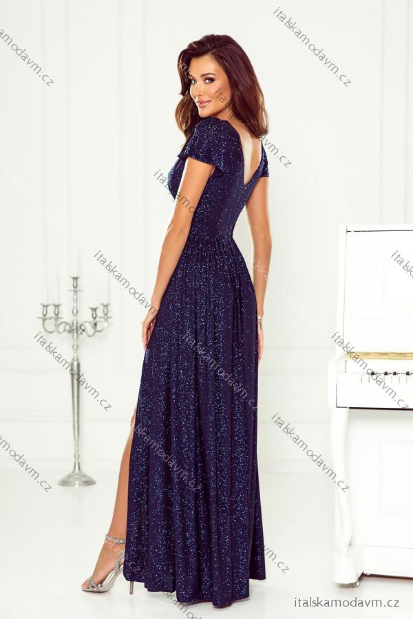 Šaty dlhé spoločenské trblietavé s flitrami krátky rukáv dámske nadrozmer (34-50) POLSKÁ MÓDA PMLWD24GABRIELA1/DR tmavo modrá 42