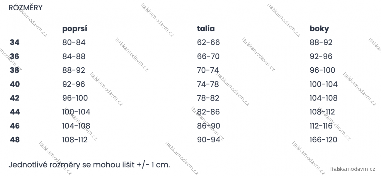 veľkosť 34- cez prsia 80-84cm, pás 62-66cm, boky 88-92cm, dĺžka 150cm.